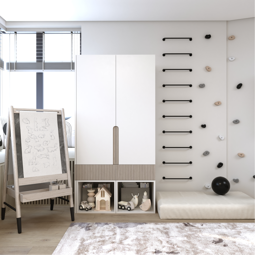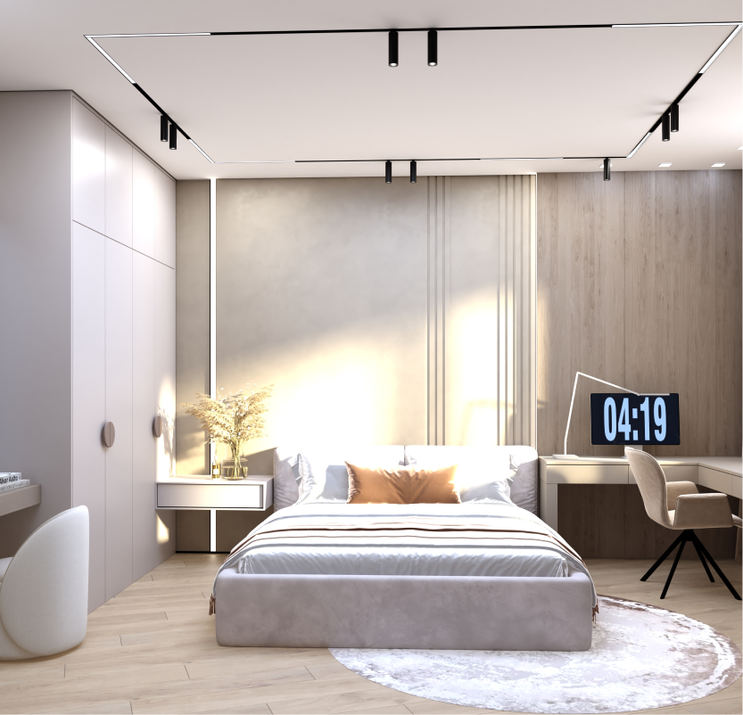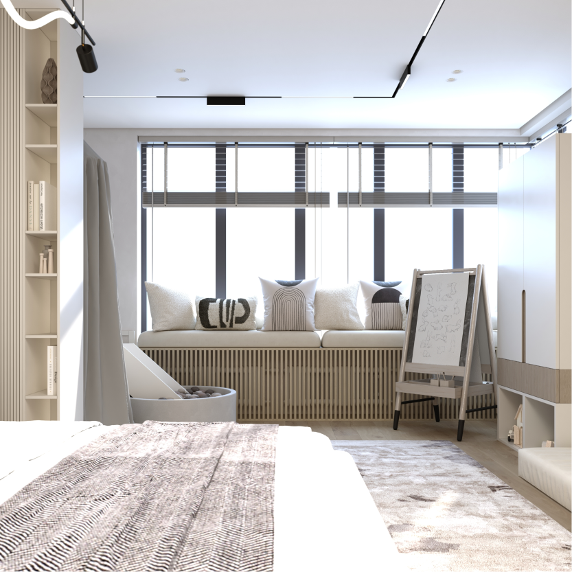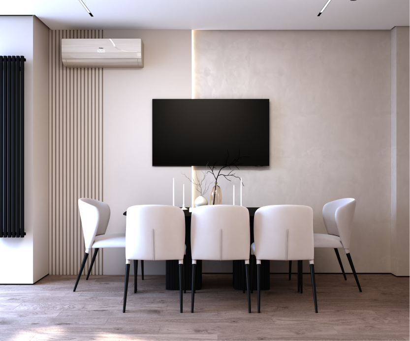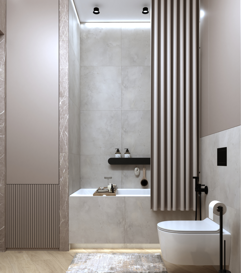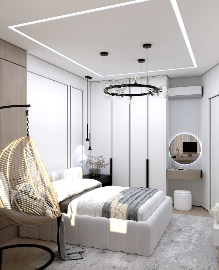 в монохромных оттенках с выразительными черными акцентами. В качестве декоративных элементов использованы стеновые панели, разработанные нашими специалистами по мебели