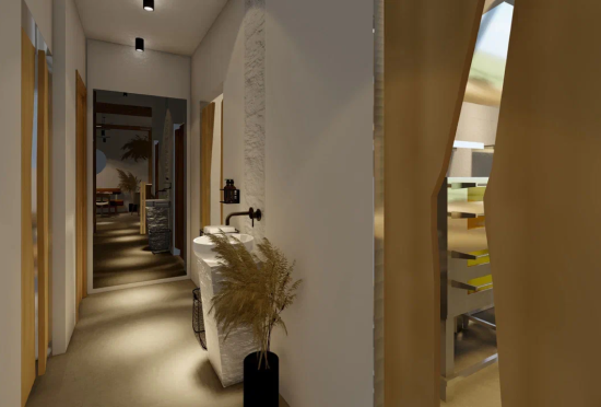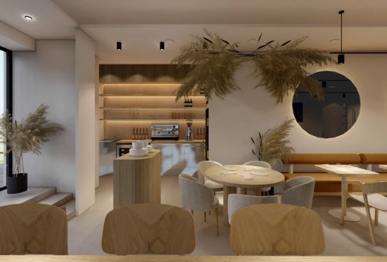Проект, где хотелось показать мягкость, тепло и уют. Мы добились этого с помощью натурального дерева, приглушенного света, пушистых кресел-овечек, сухоцветов пшеничного оттенка.