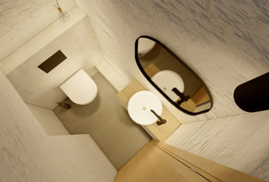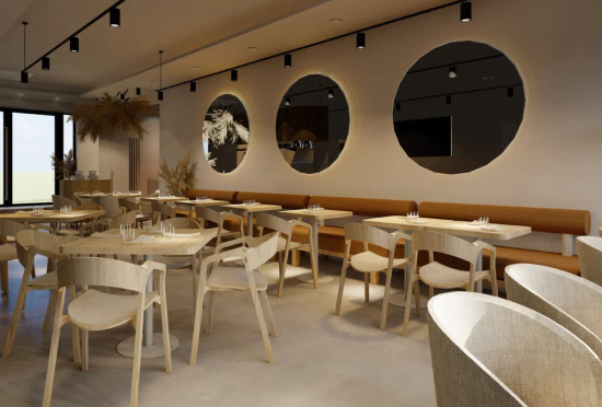 Зеркала на стенах имеют не только декоративную функцию, но и дают больше света за счет отражения. В проекте нами продумано все, даже тарелки, из которых вы будете есть пасту.