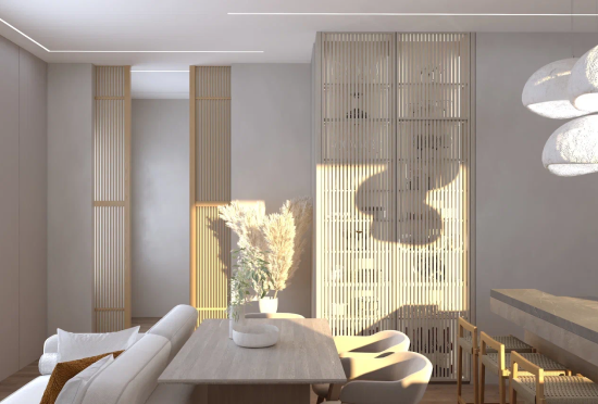 Квартира 93 кв. метра для молодой девушки студентки. Лаконичный минимализм с нотами японской культуры создают тот самый стиль Джапанди. Заказчики полностью доверились нашему решению, поэтому удалось реализовать все задумки.