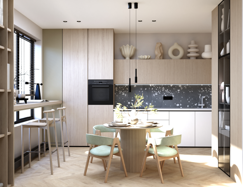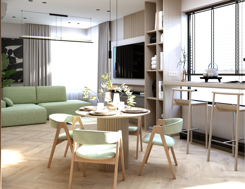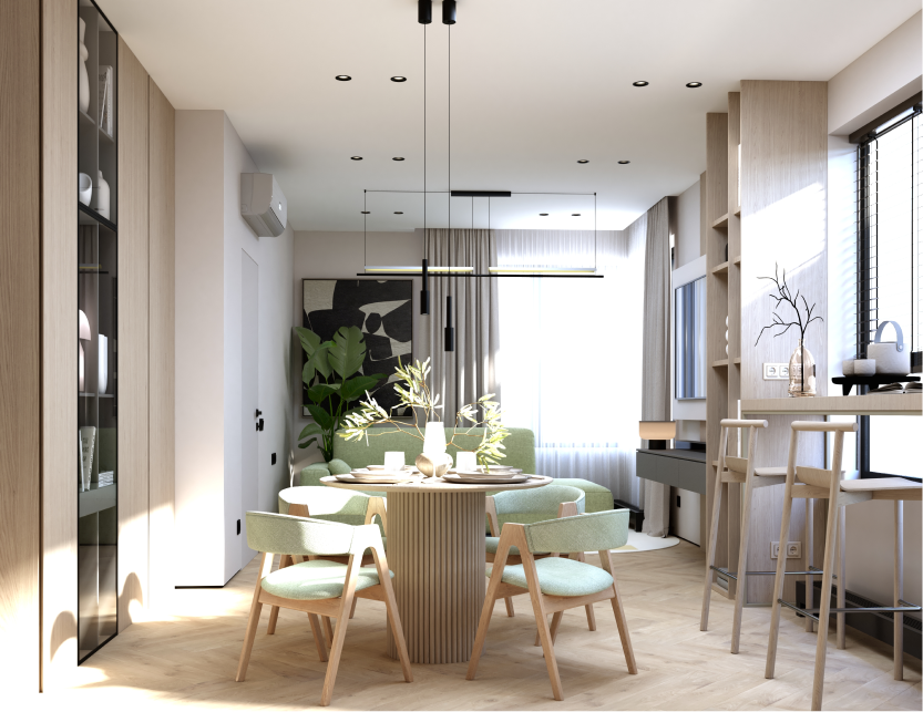 а уникальность добавляют картины в современном стиле и необычный декор.