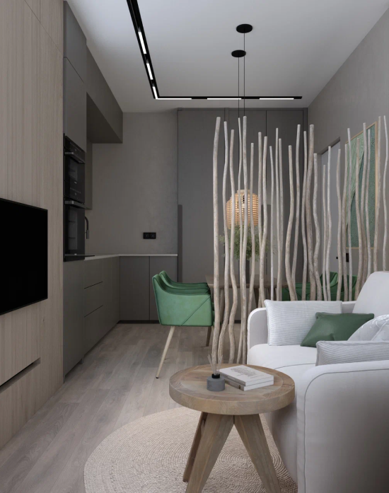 Квартира 36 кв.метров в Санкт-Петербурге для молодой семьи. Изначально ребята хотели лофт. Но от его грубых решений мы ушли в мягкость минимализма с эко стилем. Мы использовали декоративную штукатурку на стенах, натуральные материалы мебели, локально натуральный зеленый оттенок .
