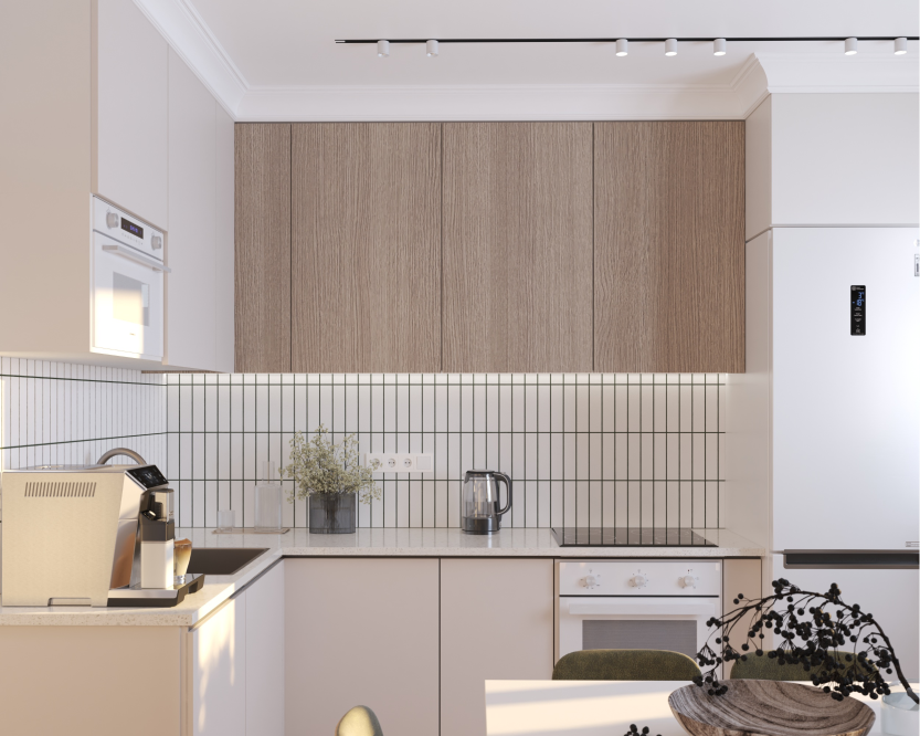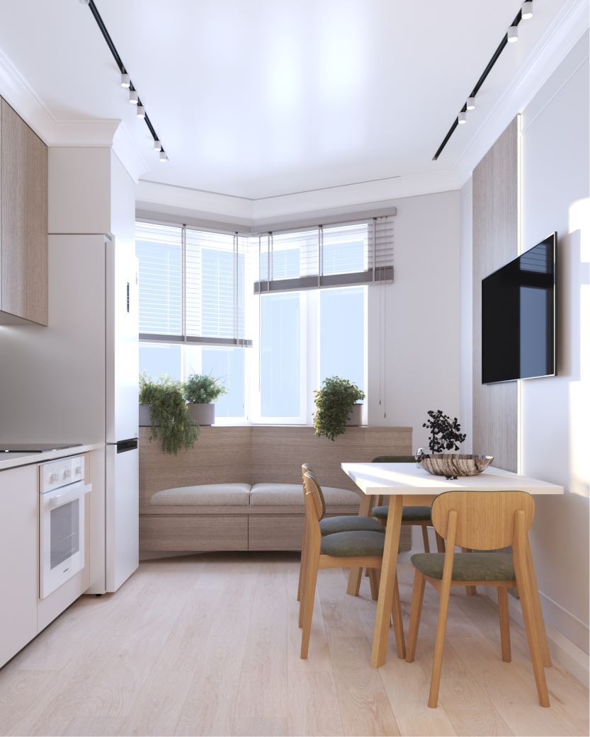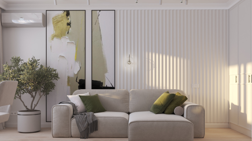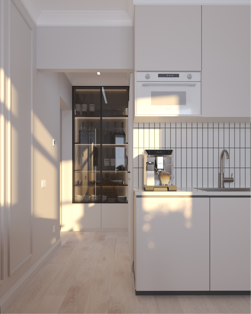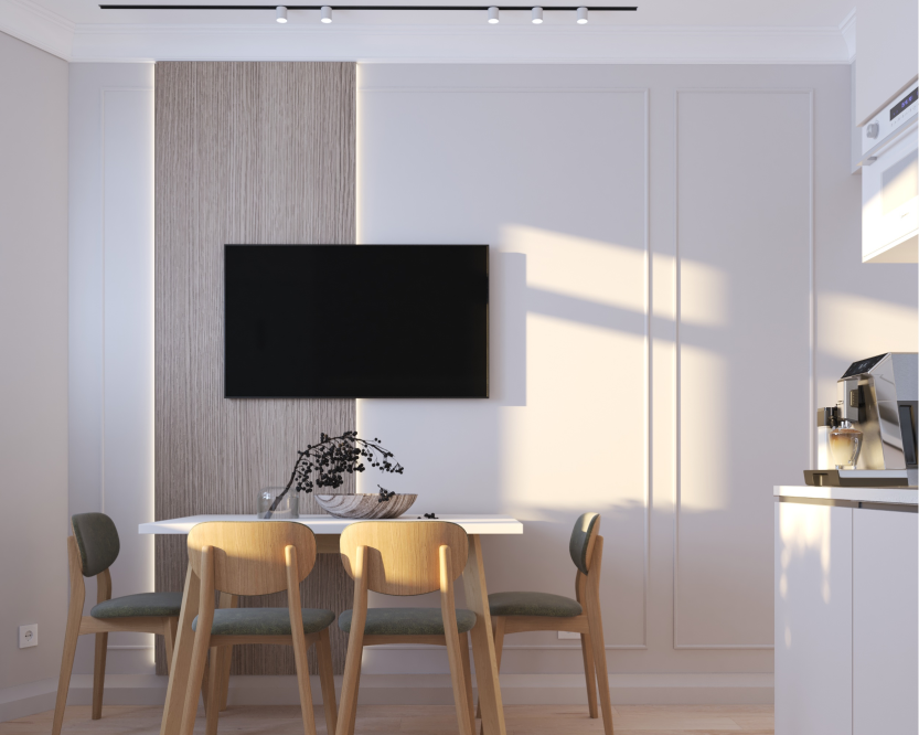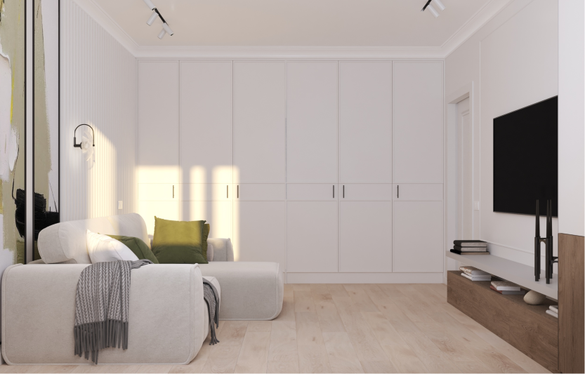 Интерьер в светлых тонах с элементами французского стиля. Цветовые акценты создают локальные предметы интерьера, а особую атмосферу добавляют картины в гостиной, выполненные нашими художниками.