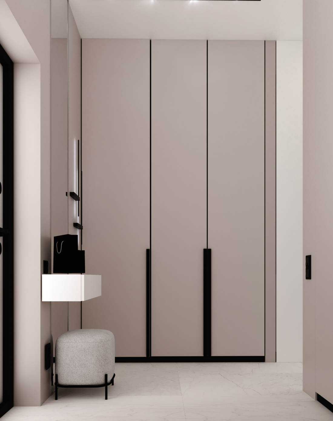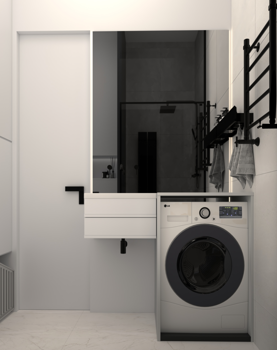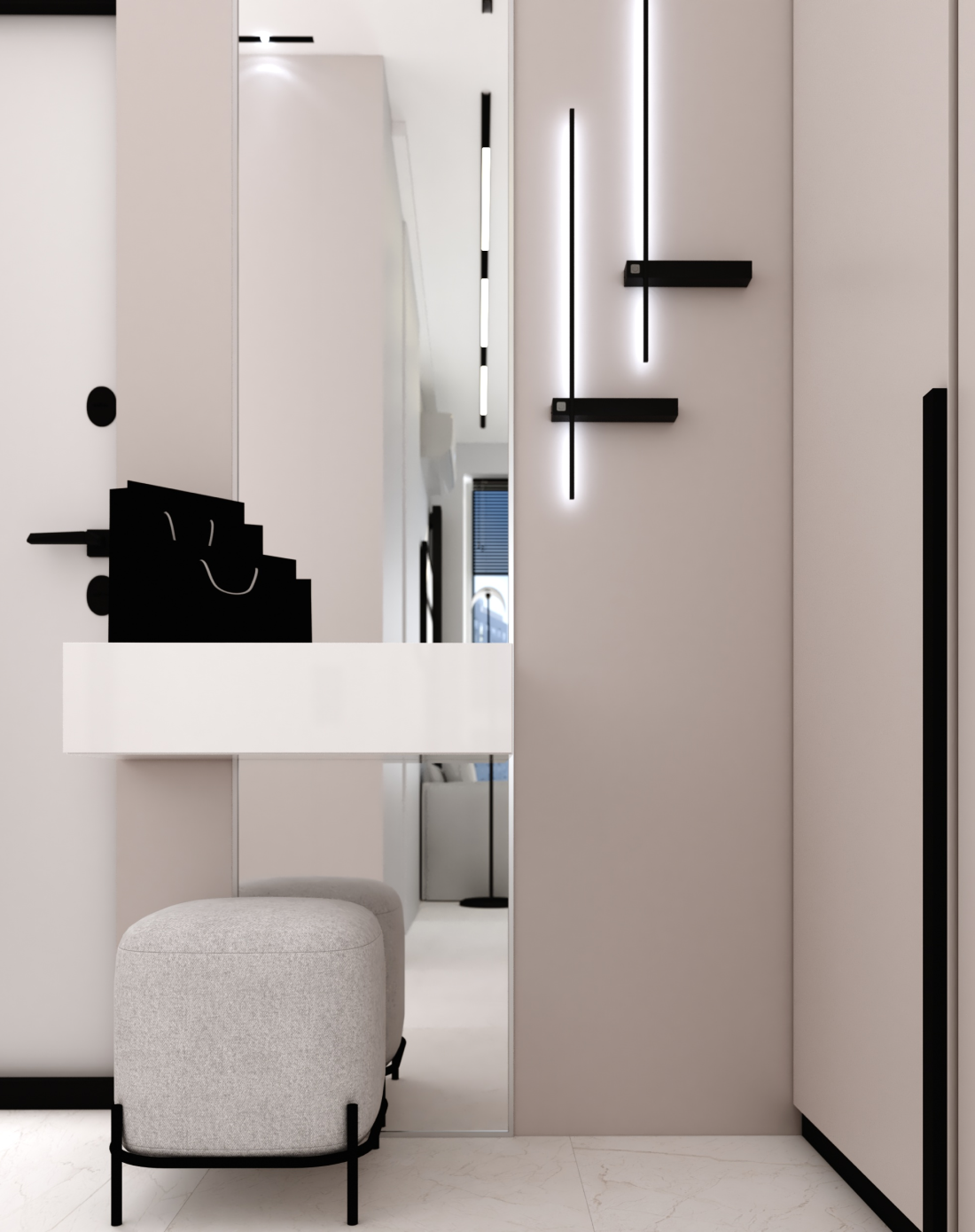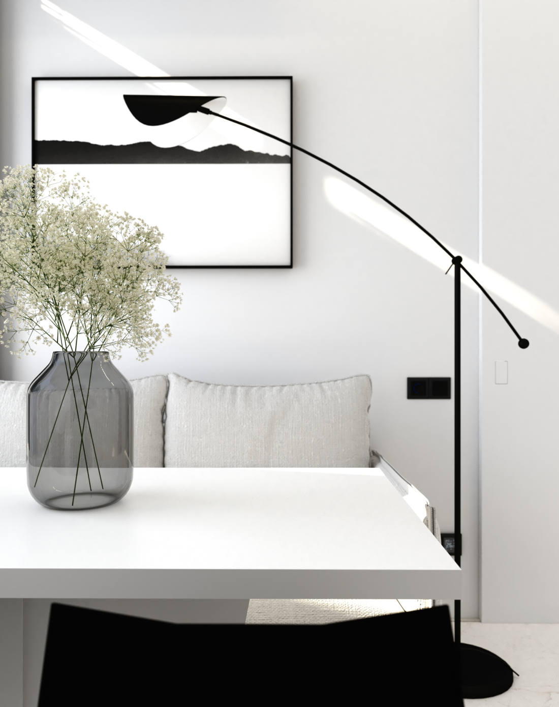 и минималистичность ландшафта перенеслись и в минимализм интерьера для молодой семейной пары. И на 36 квадратных метрах мы впихнули невпихуемое.