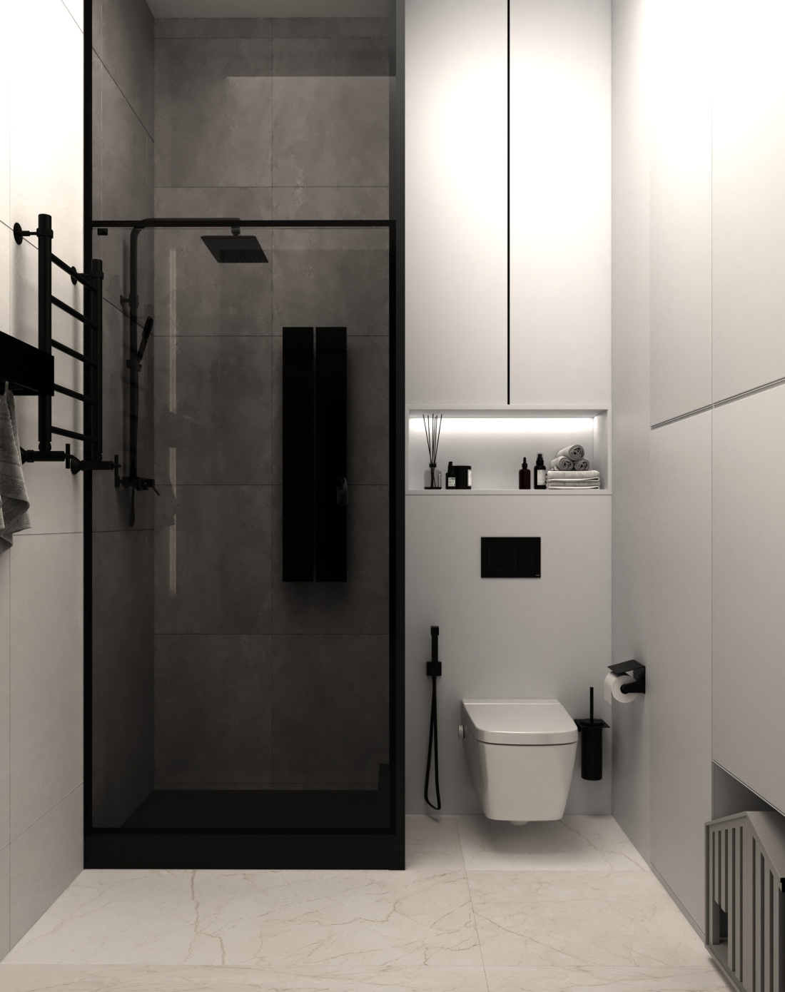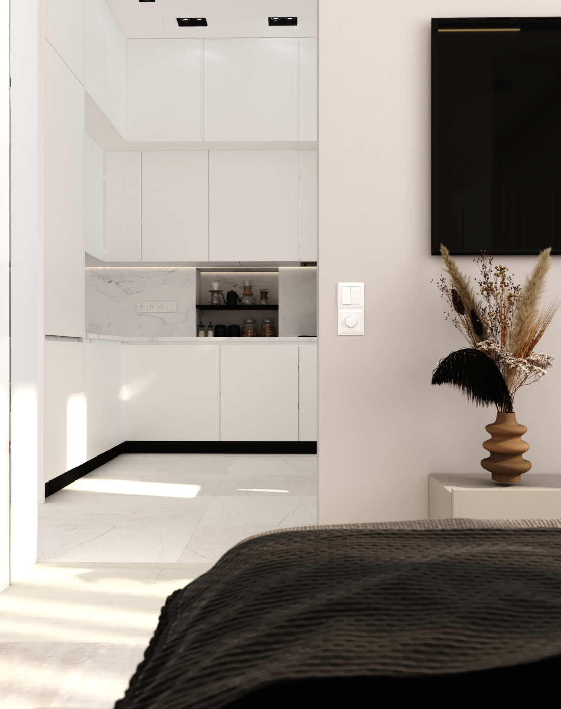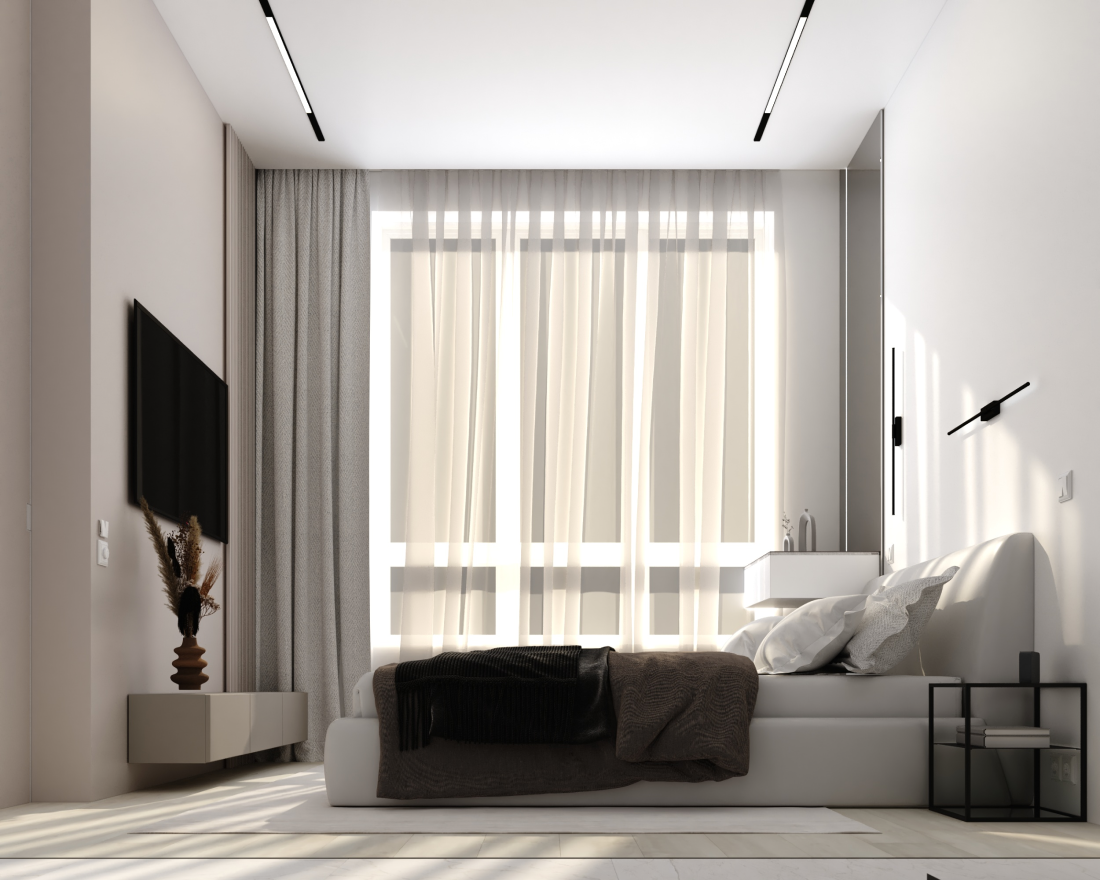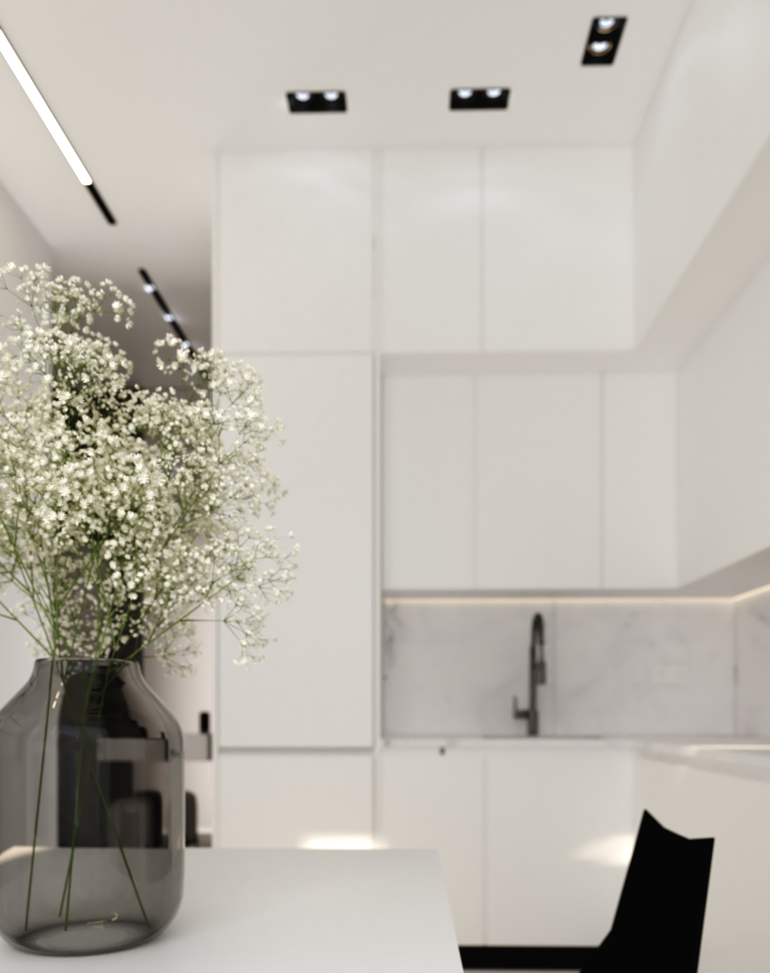 и минималистичность ландшафта перенеслись и в минимализм интерьера для молодой семейной пары. И на 36 квадратных метрах мы впихнули невпихуемое.