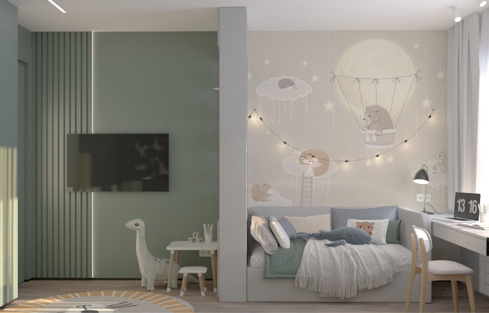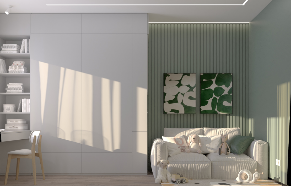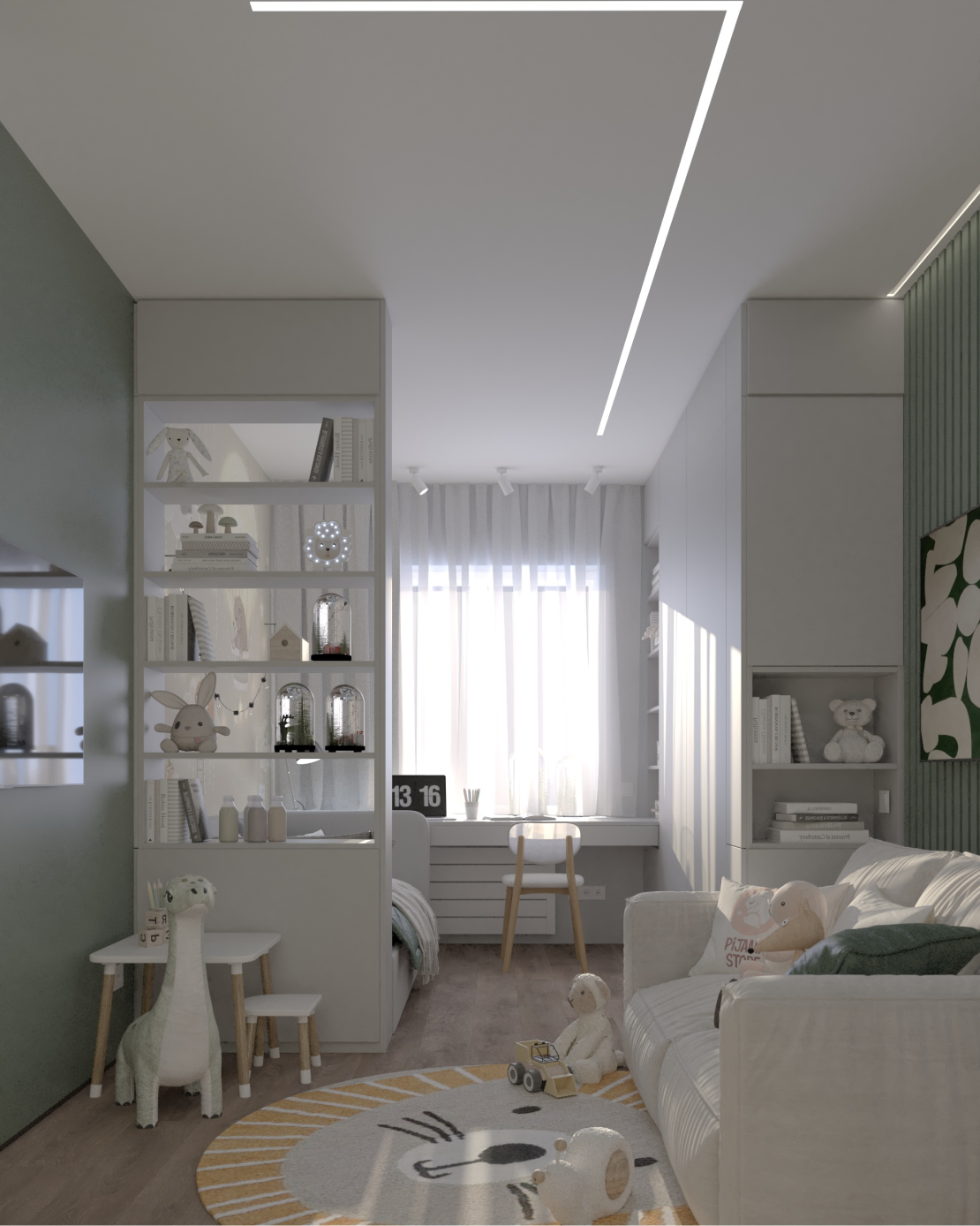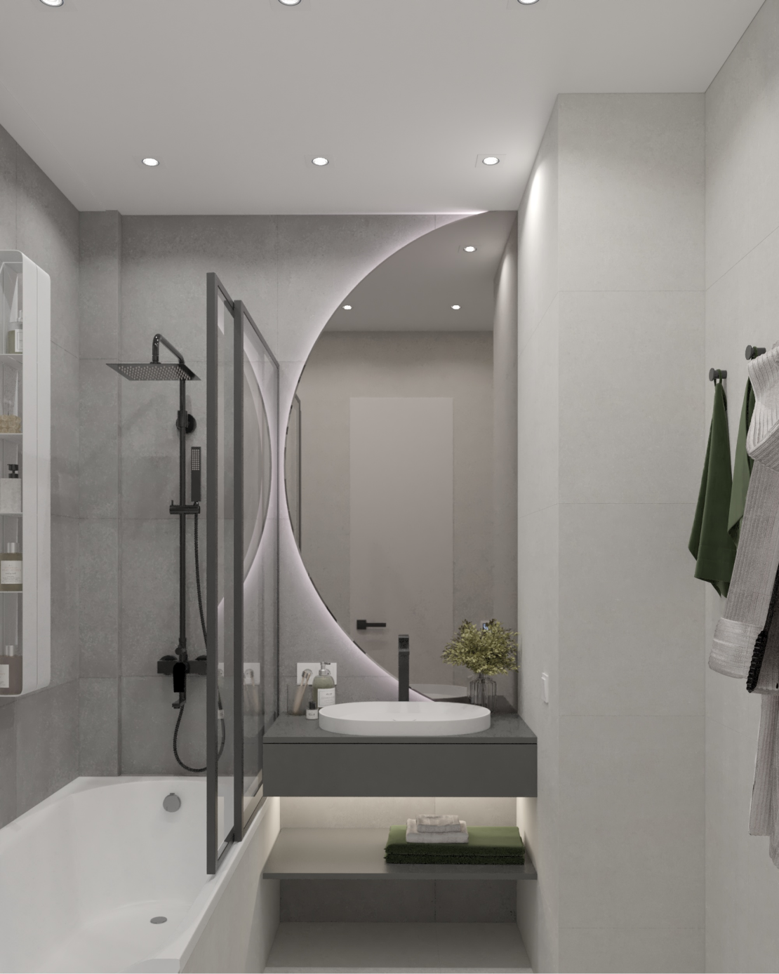 Этот интерьер был разработан полностью удаленно, и в Пскове он заслуженно считается одним из самых красивых. Монохромная гамма, теневой потолок и плинтус, световые линии — все это подчеркивает минимализм, создавая гармоничную и стильную атмосферу.